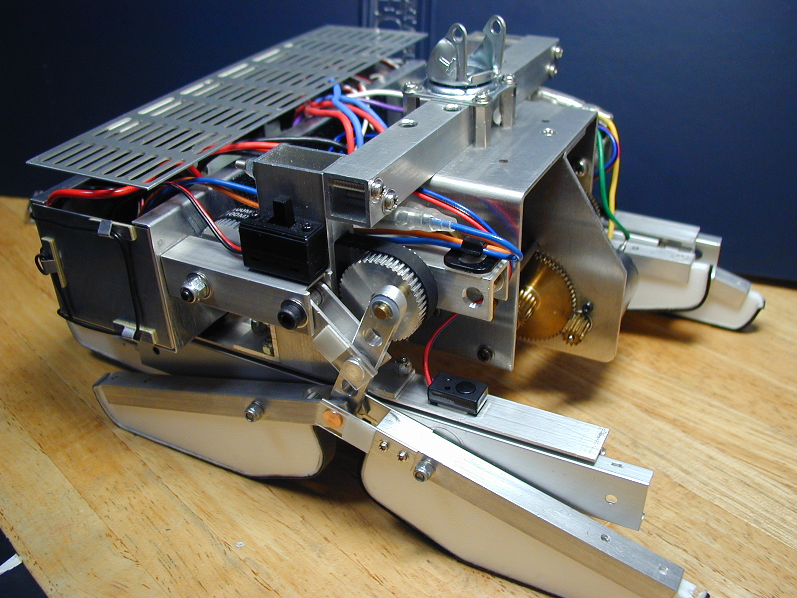 歩行ロボットによる対戦です。ロボット技術研究会の旋盤とフライス盤を駆使して、オール手作り。一人では無理と言われたので、企画、設計、製造まで全て一人で行いました。さすがに製造が間に合わず、自宅に小型旋盤と小型フライス盤を導入しました。こういうのは、チームでやらなきゃね!